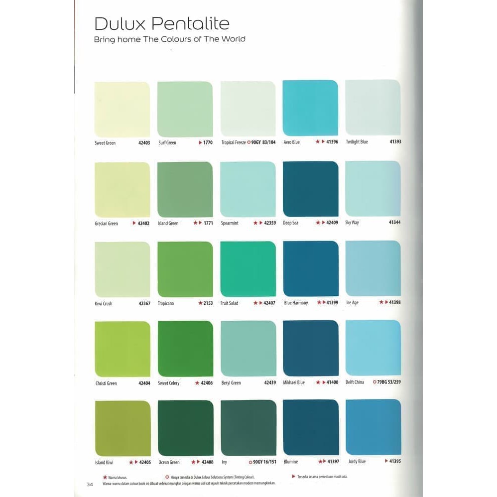 Namun terkadang Anda kesulitan harus memulai dari mana dalam memilih paletcampuran warna yang cocok dengan proyek Anda. Misalnya untuk warna abu- abu ada dewdrop grey warna putih ada white on white warna coklat ada woodwind warna hijau tosca ada jade valley dan biru tosca ada undersea voyage. Katalog Warna Cat Dulux Hijau.